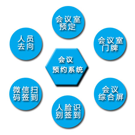 會議室預定系統是為了解決企業、政府單位等客戶的會議室的管理問題,當會議室數量較多的時候,常常出現會議室管理混亂的現象出現,會議室的使用情況無法預知。用戶通過會議預定系統可以查詢了解會議室的使用情況,并能夠預約處于空閑狀態的會議室,會議室預約成功后,可以以郵件或短信等方式通知參會人員。當會議即將開始前,將會議的相關信息,如會議主題、時間等信息顯示在會議室門口的會議門牌上。參會人員到場后可進行掃碼簽到、短信簽到或人臉識別簽到,簽到情況數據返回后臺進行統計,如聯動了門禁系統,則簽到成功后可觸發門禁開門或直接輸入密碼門禁開門。