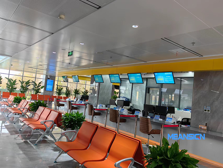 在政務(wù)排隊(duì)等候大廳,安裝液晶綜合顯示屏,與語音叫號(hào)同步,顯示大廳業(yè)務(wù)的排隊(duì)等候進(jìn)度,同時(shí)每個(gè)業(yè)務(wù)辦理窗口,吊裝窗口叫號(hào)屏,顯示每個(gè)窗口的編號(hào),當(dāng)前正在辦理的號(hào)碼,以及等候的人數(shù),窗口辦理事項(xiàng),系統(tǒng)依次按照排隊(duì)順序呼叫辦理人員,保持現(xiàn)場(chǎng)有序進(jìn)行,提高業(yè)務(wù)辦理效率。