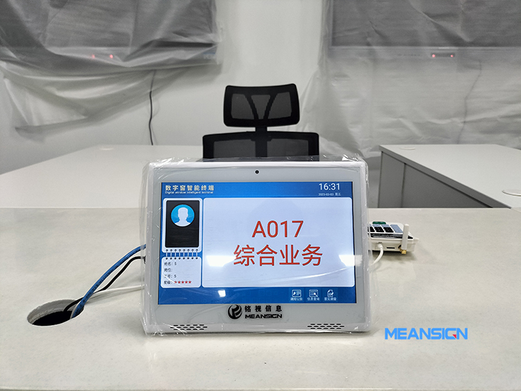 每個(gè)服務(wù)窗口,吊裝叫號(hào)顯示屏,同時(shí)顯示窗口編號(hào)、正在辦理業(yè)務(wù)的號(hào)碼,以及叫號(hào)請XX號(hào)到X號(hào)窗口。窗口顯示屏的容,可以根據(jù)需要在排隊(duì)系統(tǒng)主機(jī)上進(jìn)行設(shè)置,如顯示的文字、顯示效果、滾動(dòng)速度。每個(gè)服務(wù)窗口,都分別配備一個(gè)硬件呼叫器(工作人員用于結(jié)束當(dāng)前業(yè)務(wù),呼叫下一位辦理人員);服務(wù)評價(jià)器,用于顯示工作人員的姓名、崗位、工號(hào),以及應(yīng)用場所的名稱,時(shí)間,當(dāng)前的辦理編號(hào),辦理業(yè)務(wù),還有對本次服務(wù)的評價(jià)。